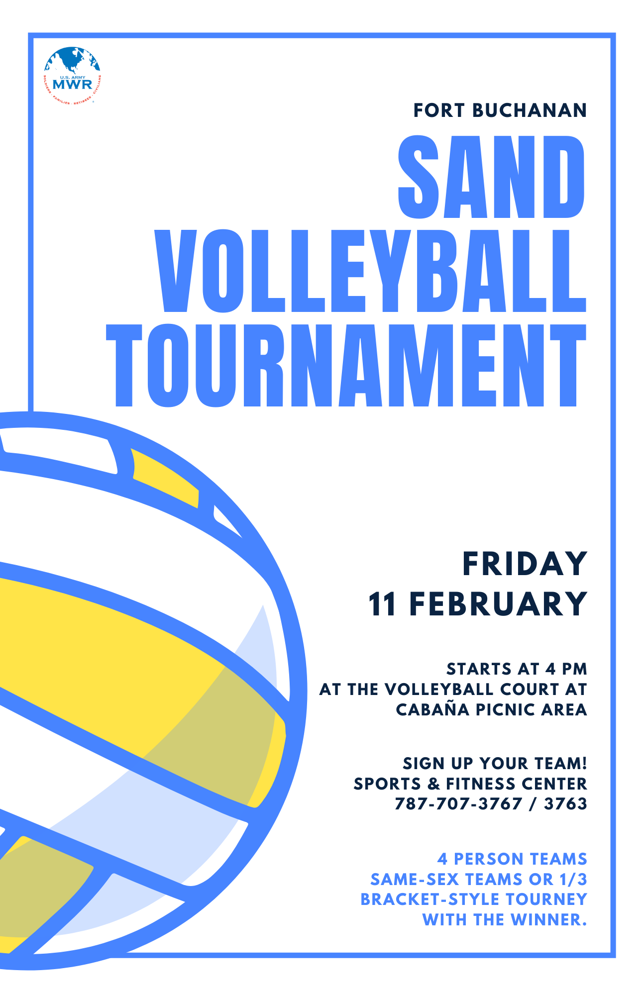 Join us on Friday, February 11 starting at 4 p.m. at the new sand volleyball court located next to the Cabaña Picnic Area.