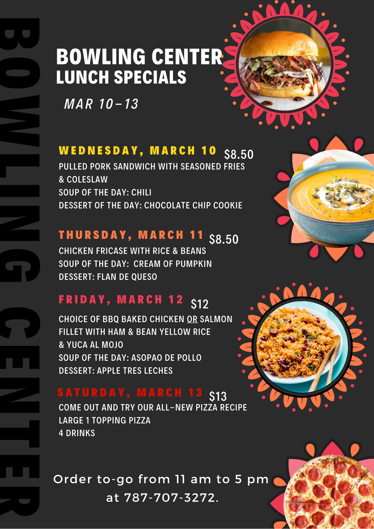 Bowling Center Lunch Specials March 3 to 6
