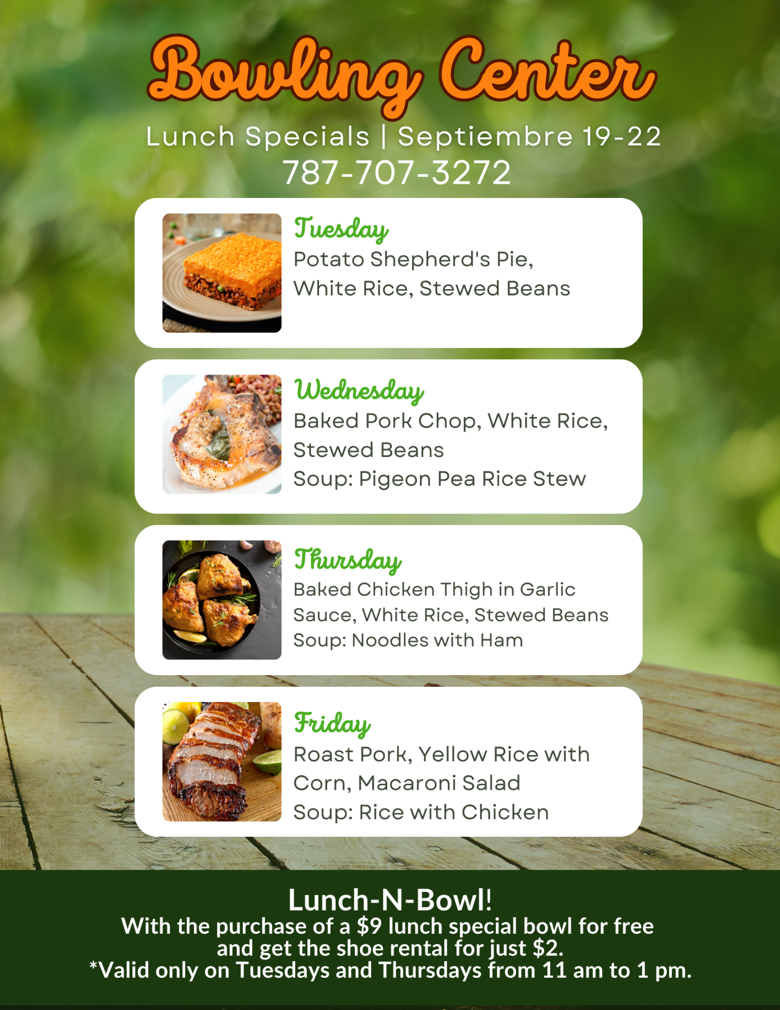 Bowling Center Lunch Specials Sep 19-22