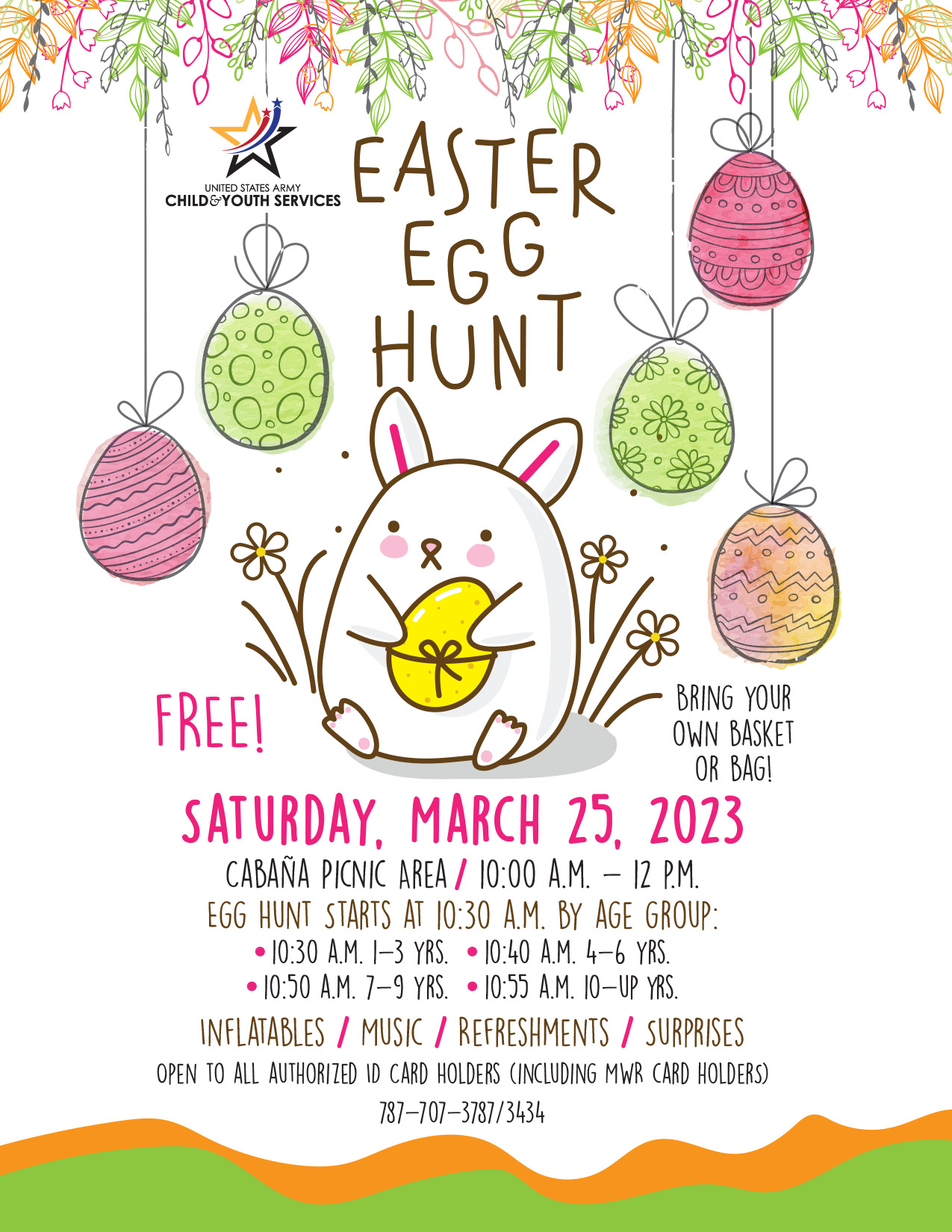 Bring your kids to the CYS Easter Egg Hunt. Enjoy music, inflatables, refreshments, and more.
