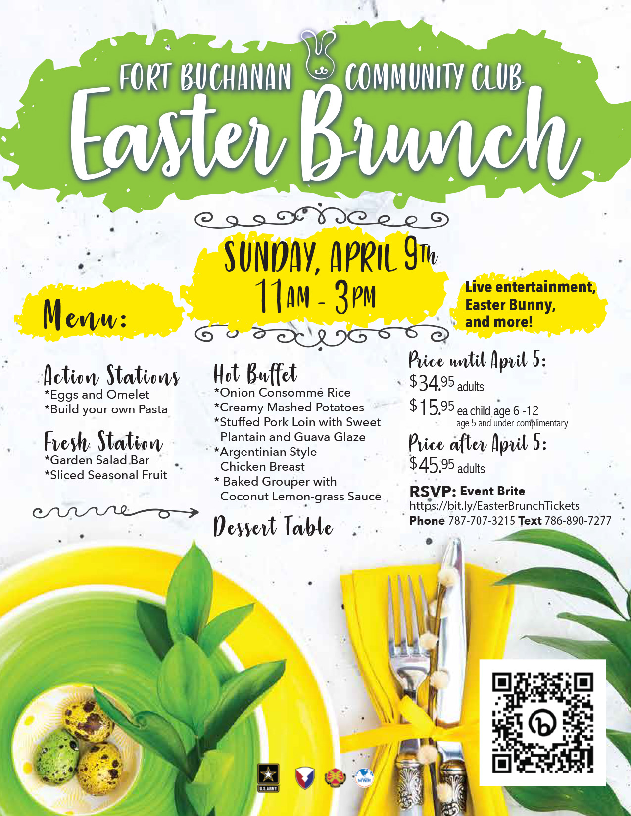 Join us for this Open to the Public event! Enjoy our Easter Brunch on Sunday, APril 9 from 11 am to 3 pm at the Community Club.