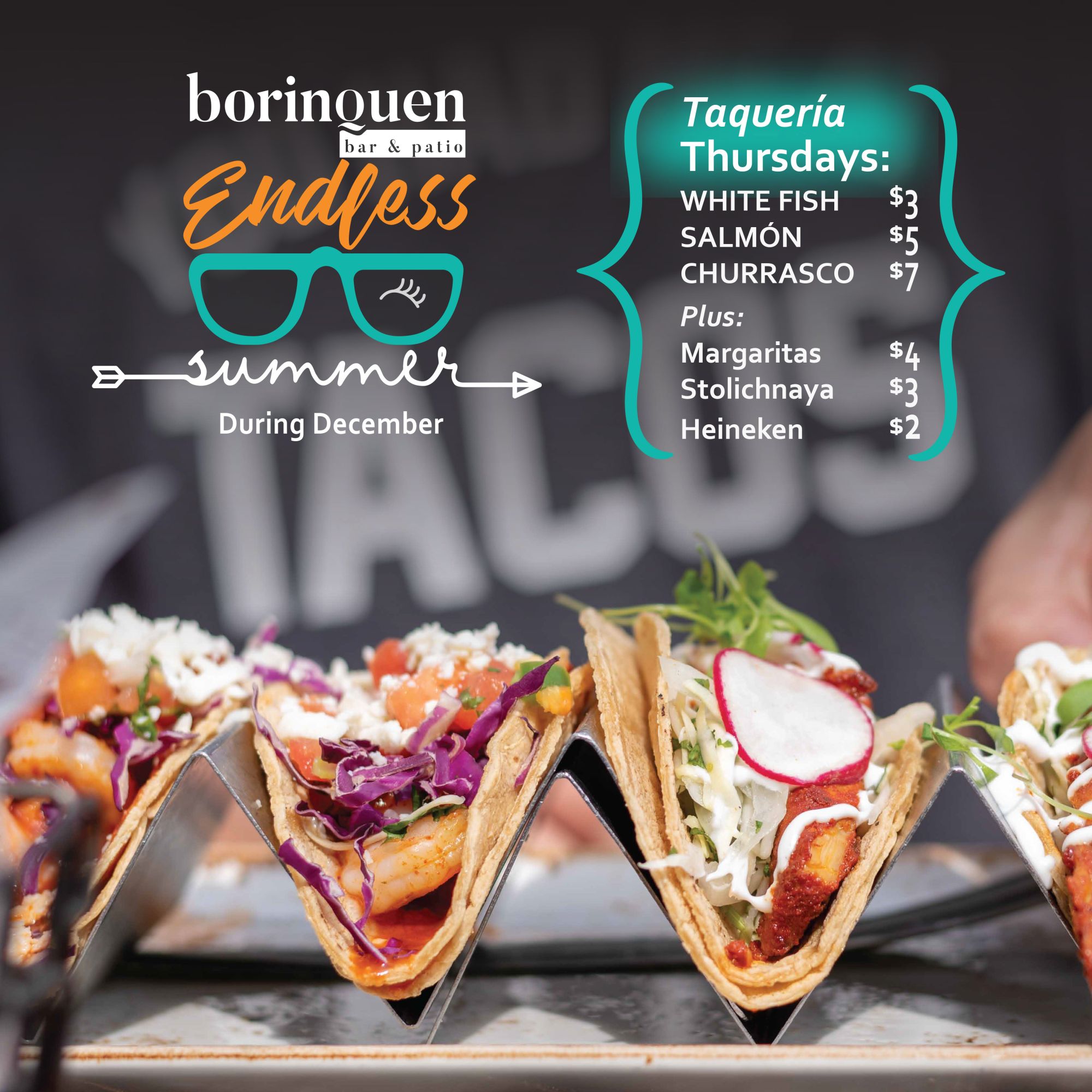 Is December and it still feels like summer at Borinquen Bar & Patio. Click to see our delicious specials on: