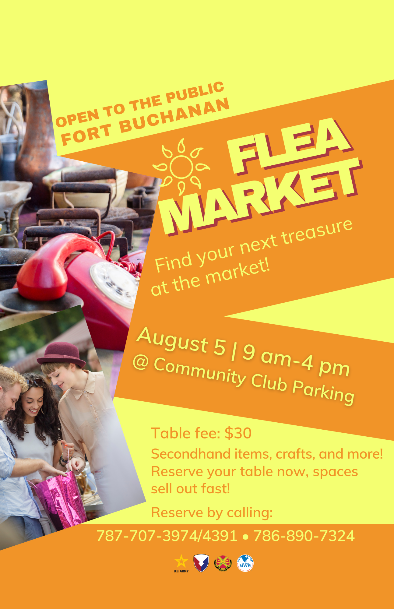 Buy or sell at Fort Buchanan Flea Market on Saturday, AUgust 5 from 9 am to 3 pm at the Community Club.