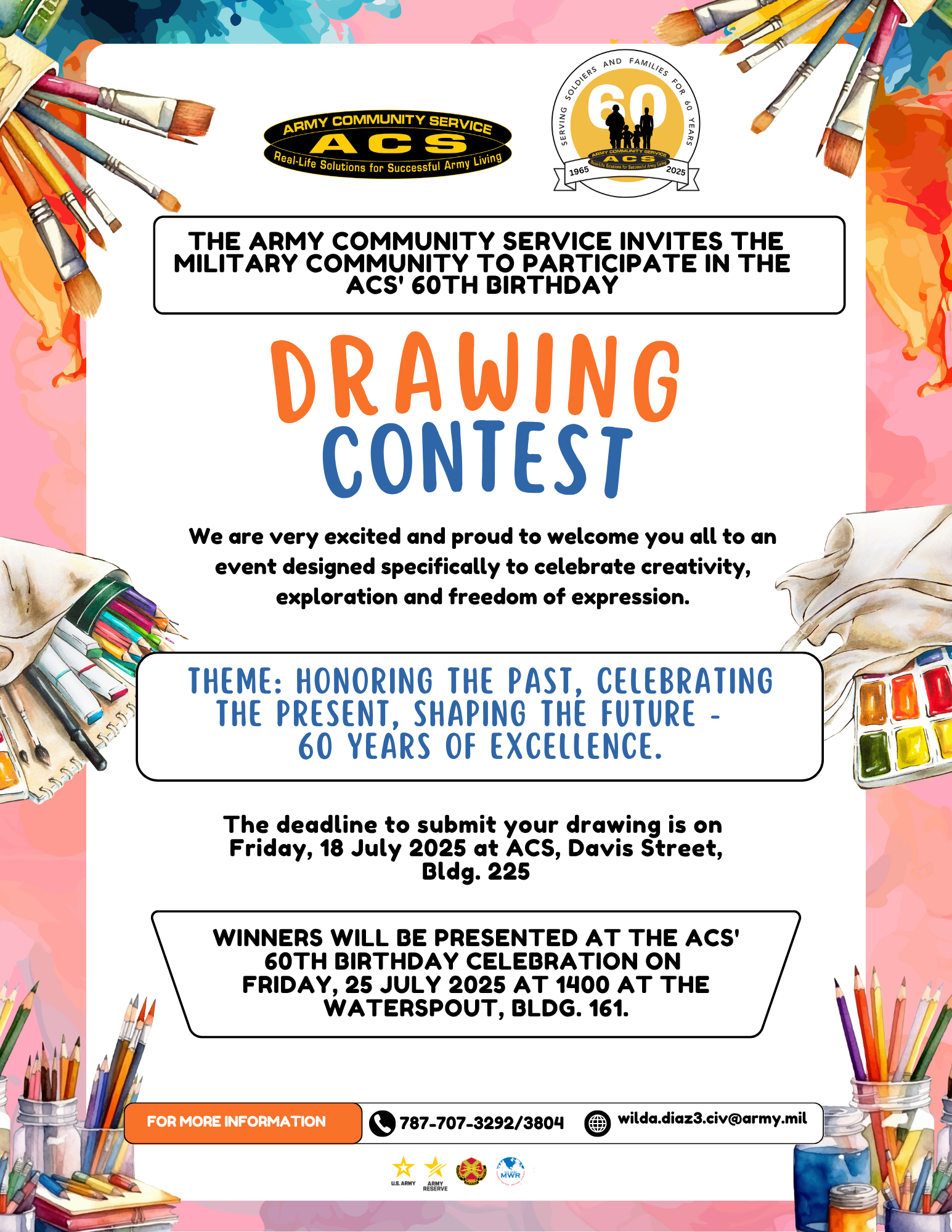 The Army Community Serviecs invites the military community to participate in the ACS 60th Drawing Contest.