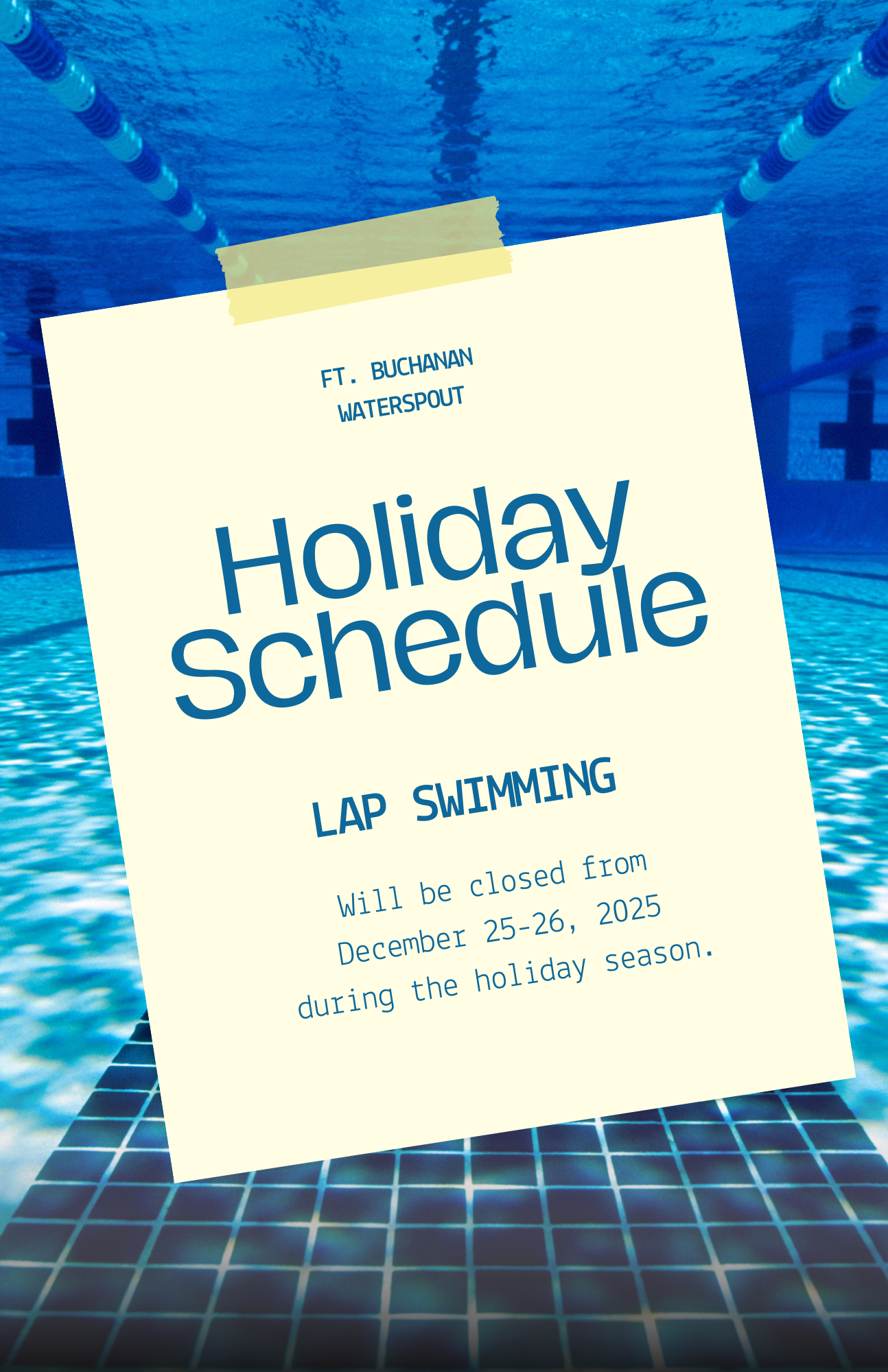 Please note that Lap Swimming at the Water Spout will be closed on December 25 and December 26, 2025, in observance of the holiday season. Regular lap swimming hours will resume following the holiday closure.