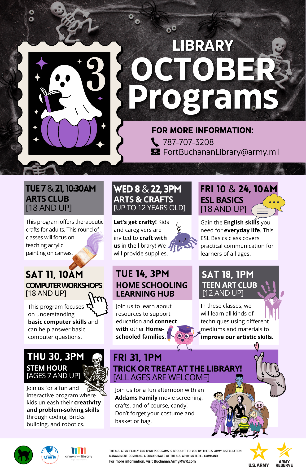Check out the Fort Buchanan MWR Facebook page to see this month's activities and programs at the library!